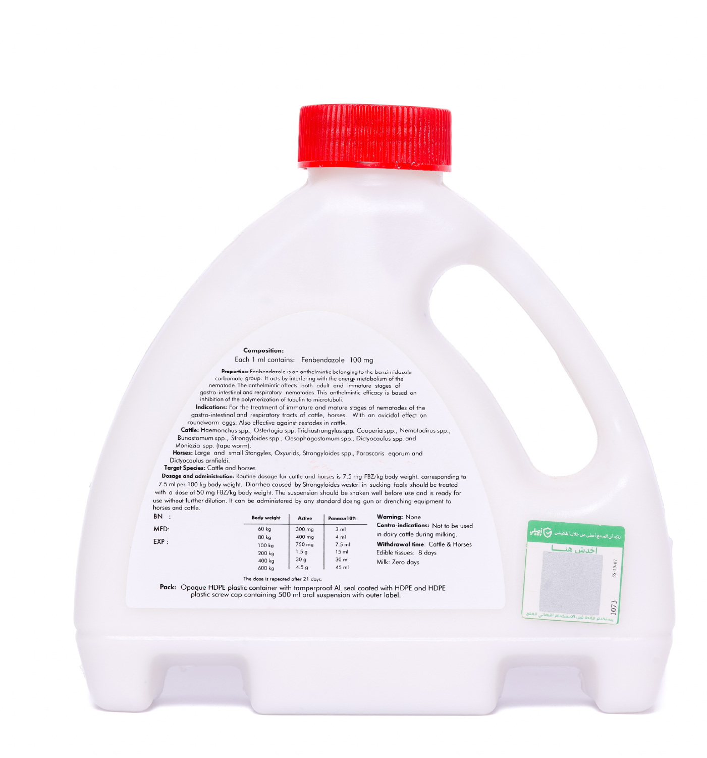Composition: Fenbendazole as a broad spectrum anthelmintic agent.